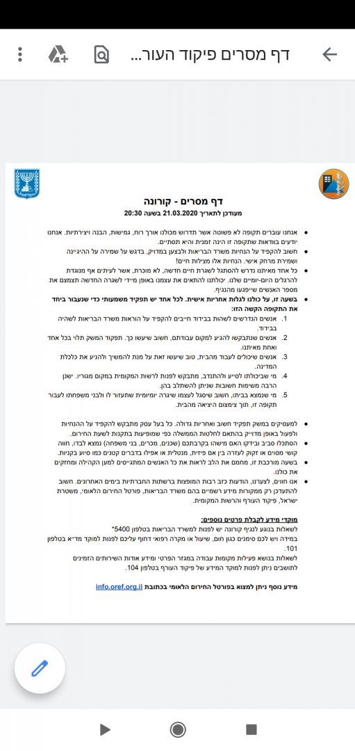 שבוע טוב, שימושכם. ההנחיות מצילות חיים. בריאות טובה לכולם.